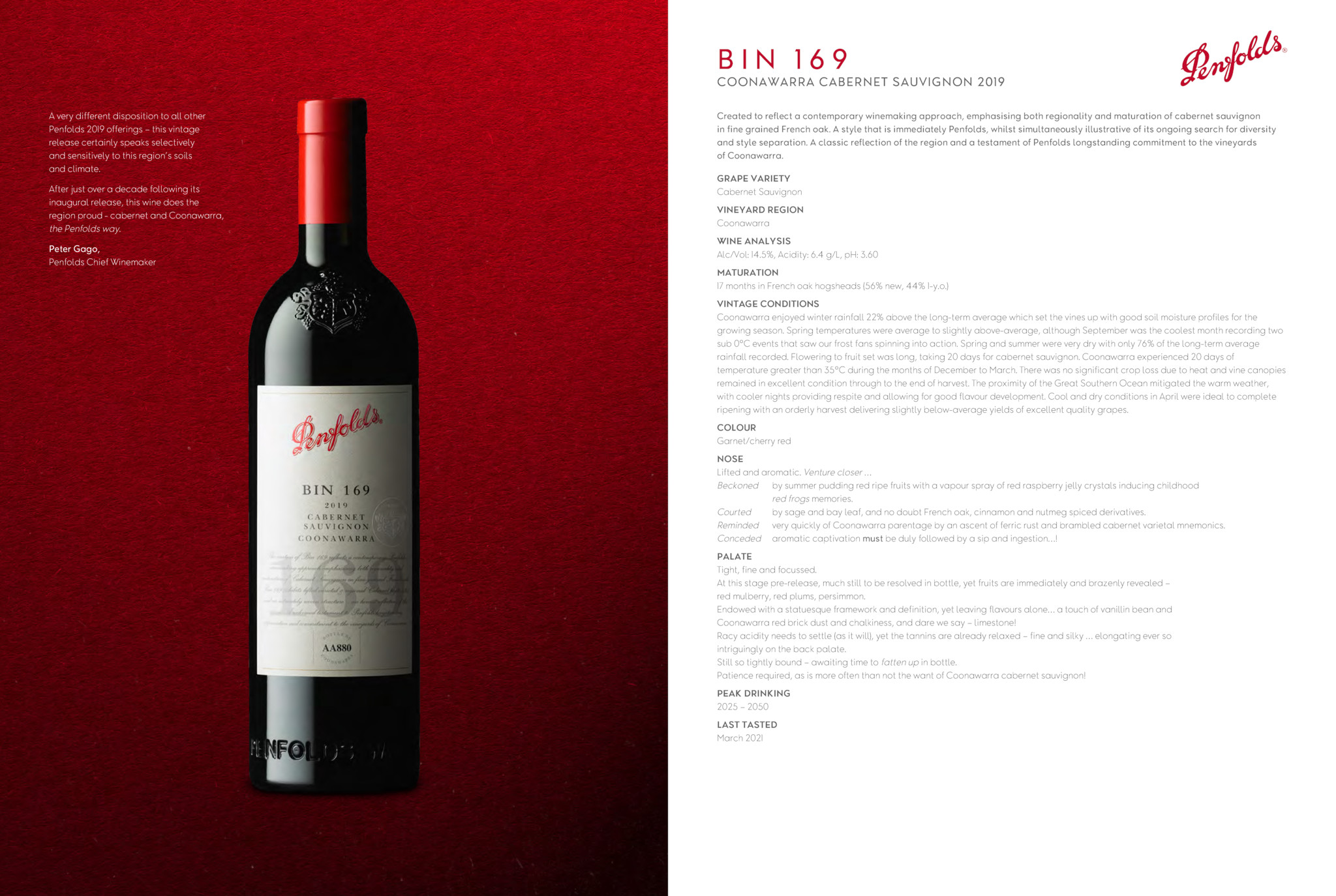 2019 Penfolds Bin 169 Coonawarra Cabernet Sauvignon