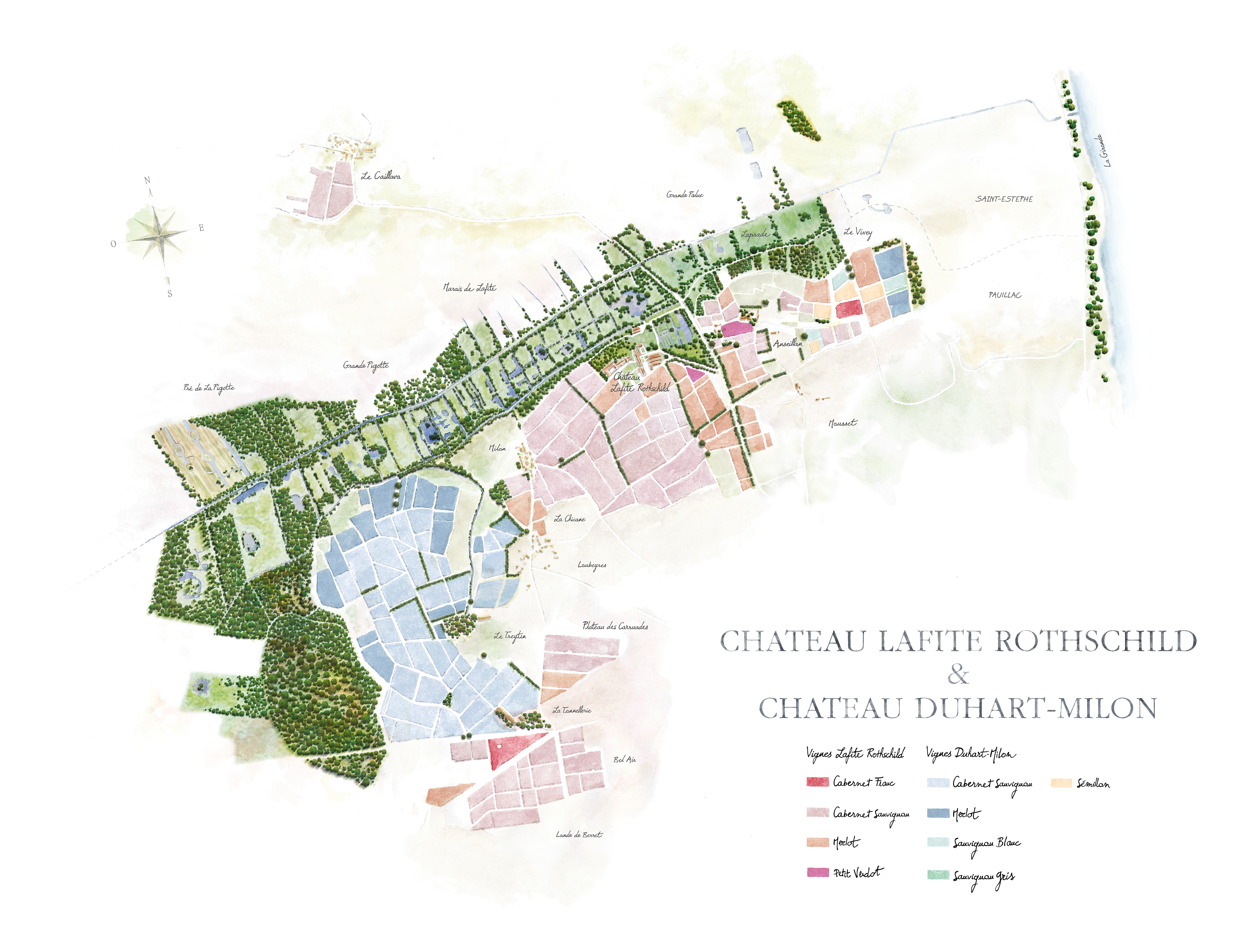 Het landgoed van Château Duhart-Milon ligt aan de westkant van Lafite Rothschild. De wijngaard bestaat uit ongeveer 75 hectare land en is beplant met Merlot (33%) en Cabernet Sauvignon (67%) wijnstokken. In totaal is de productie van dit wijnhuis ongeveer 30.000 kisten per jaar.