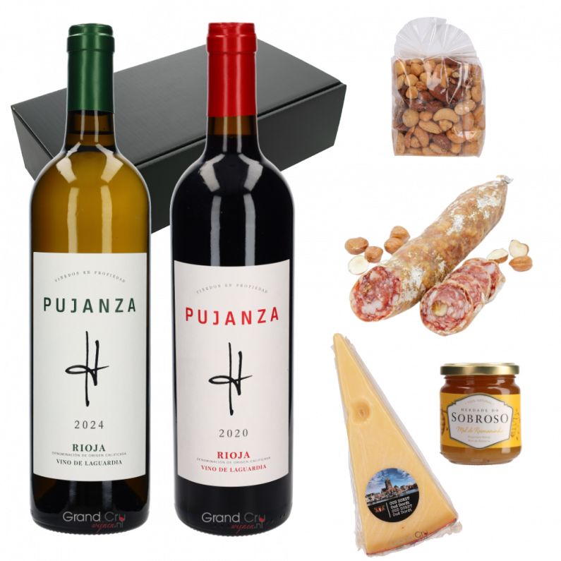 We've put together a package with several delicious wines and Grand Cru-worthy delicacies. You'll also find more information about the package contents and the individual prices on the "Package Contents" tab. If you'd prefer a different pairing, that's no problem, and we're happy to help. This pairing includes two fine wines from Pujanza , originating in the highlands of the Rioja region. Pujanza is an internationally renowned winery, and in this package you'll find delicious delicacies and a fine red and white Rioja with rave reviews from international wine press outlets such as Parker. Naturally, these are wines we carry exclusively, not unknown white-label wines of often questionable quality.