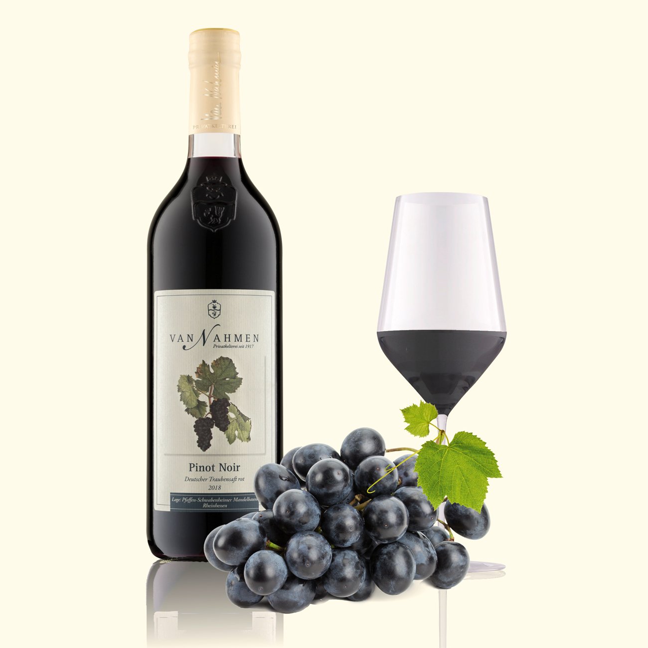 Voor dit druivensap maakt Van Nahmen gebruik van Pinot Noir, afkomstig uit biologische wijngaarden in Duitsland. De koele nachten en warme dagen zorgen voor een langzame rijping, waardoor de druiven hun frisse zuren behouden en tegelijkertijd aromatische diepte ontwikkelen. Door uitsluitend biologische druiven te gebruiken, garanderen ze dat er geen kunstmatige bestrijdingsmiddelen of meststoffen in het proces komen.
